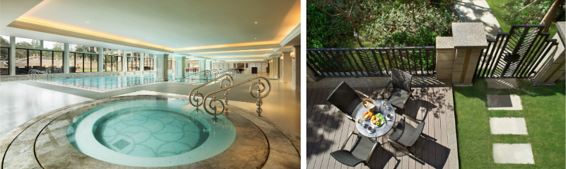 Outside, the art of afternoon tea unfolds in harmony with emerald-canopied tranquility.